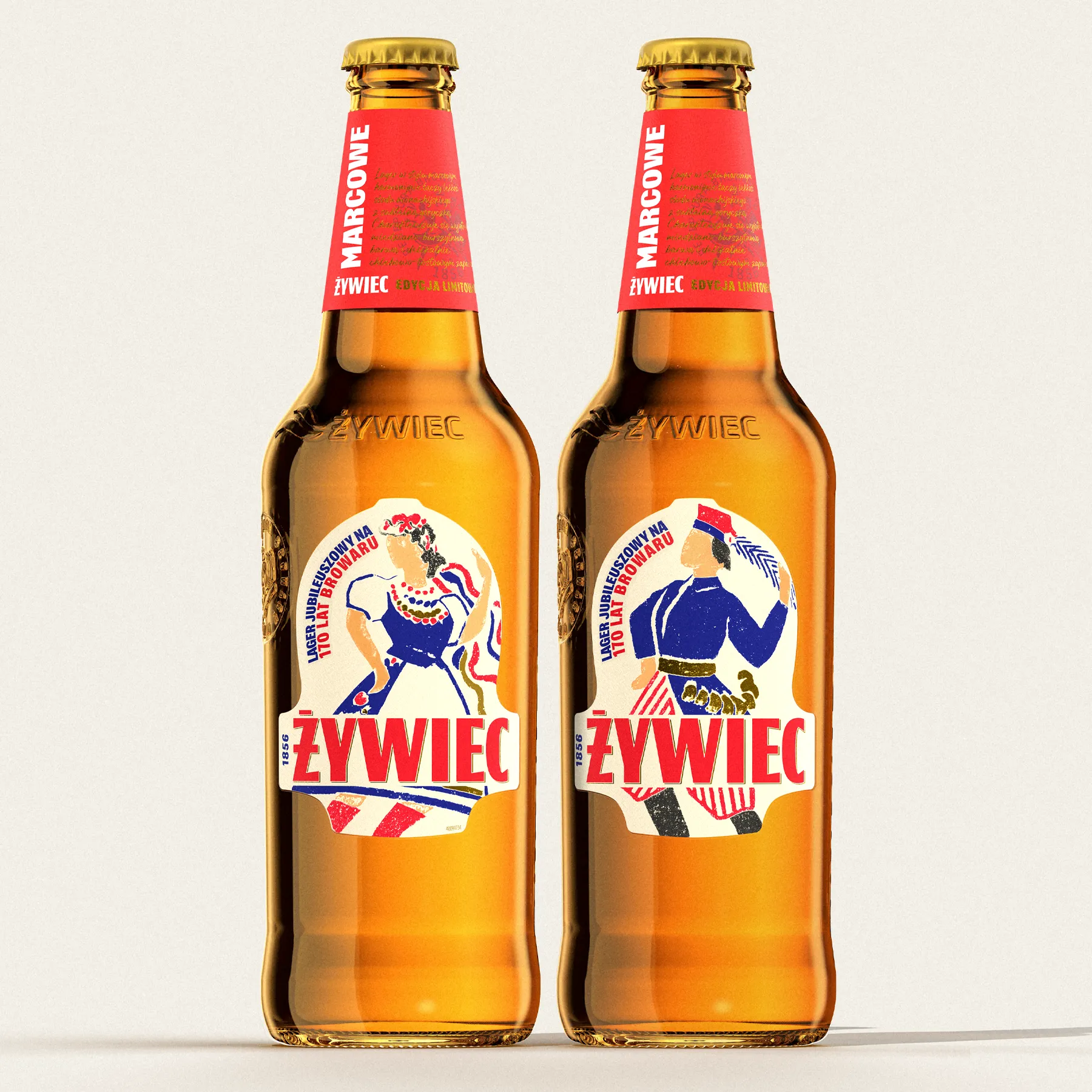 For the 170th anniversary of Żywiec, we wanted celebrate its rich history — without overcomplicating things. The dancing Krakowiak and Krakowianka have been on the label for decades, instantly recognisable.